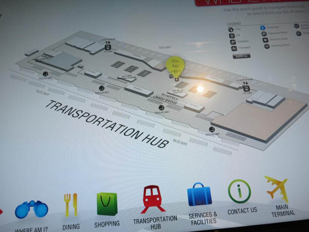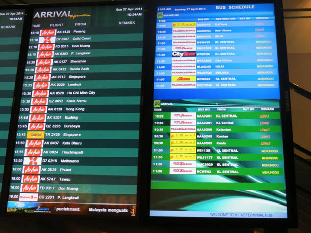 到达航班电子屏幕,注意右边为机场巴士的指示: