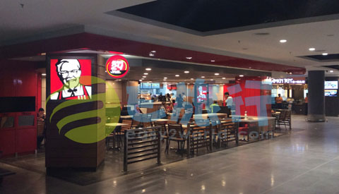 2楼到达厅L2-20~L2-24附近有KFC等快餐、咖啡店