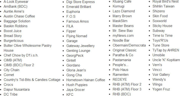二楼商铺列表: