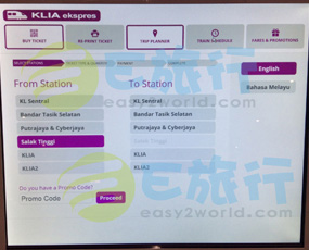 机场为起点提供KLIA2=KL SENTRAL的机场快线,全程约39分钟,每隔30分钟一班(高峰时段20分钟一班)。途中经停KLIA、Salak Tinggi、Putrajaya & Cyberjaya、Bandar Tasik Selatan共4站,首班分别为04:33从KL Sentral出发和05:48从KLIA2出发,末班车分别为00:03从KL Sentral和00:59从KLIA2出发。